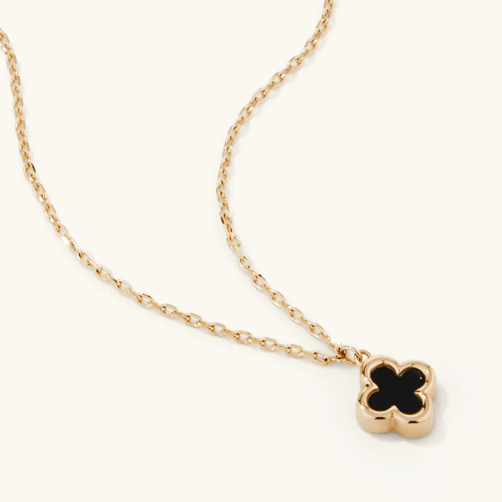 Timeless pendant necklace in 9kt Yellow Gold with sleek black onyx clover charm and warm golden finish. Perfect for everyday wear or layering.
